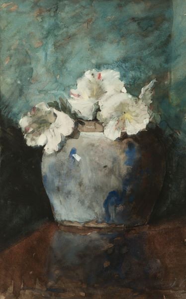 Jan Voerman Sr. geeft de lessen aan Jan Verkade in diens ouderlijk huis aan de Vecht. Hij ontmoet daar ook diens zus Anna Verkade en wordt verliefd. Zakenman Eric Verkade is niet direct blij met de keuze van zijn dochter. Wat heeft een arme kunstenaar haar te bieden? Er moet geld worden verdiend. Het tafelzilver is al verkocht om de huur te betalen. Het wordt voor Jan tijd om ander werk te maken. Op een dag komt Augustine Obreen naar de les met een verhaal over een prachtige gemberpot die zij gezien heeft op een schuit in de gracht. Prachtig grijs glazuur met blauwe vlammen die oplichten in de zon. Verweerd doordat de schippersvrouwen jarenlang soda in de pot bewaarden. Jan schildert met bloemstillevens in de pot zijn eerste nieuwe werk. Hij spaart genoeg om Eric de hand van zijn dochter te vragen. Deze gemberpot ‘Augustine’ komt in veel van het vroege werk van Jan Voerman voor. Ook het schilderij “Pot met Azalea’s” dat bekend is geworden als voorkant van het boek “Knielen op een bed violen” van Jan Siebelink, is uit deze serie.
