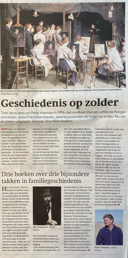 Peter Voerman, kleinzoon van Jan Voerman junior, overhandigde zaterdag in het museum het eerste exemplaar van het boek aan de Hattemse wethouder Auke Schipper. ‘Gevangen in een paradijs’ is geschreven door Kees Opmeer uit Ruinen, in samenwerking met Peter Voerman en diens zoon Tijs. Het is voor 34,95 euro verkrijgbaar in de winkel van het museum en is ook online te bestellen.