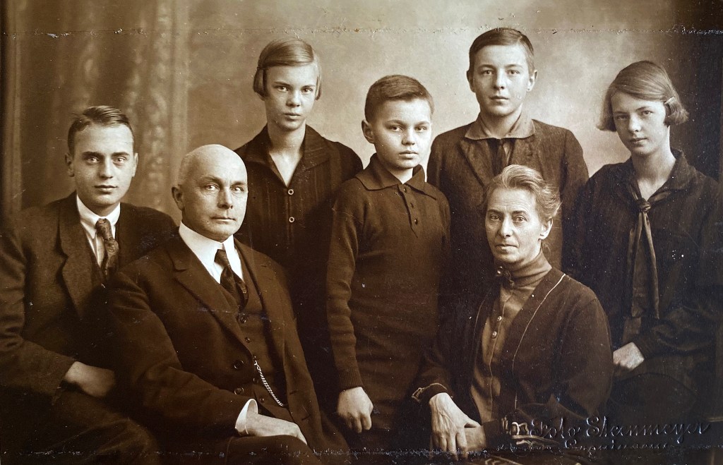 Foto: Het gezin van Bert en Wabien Mansholt-Andreae, Sicco staat 2e van rechts achter zijn moeder