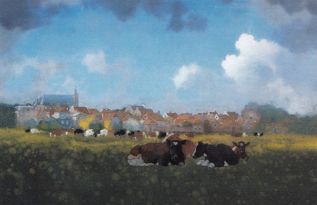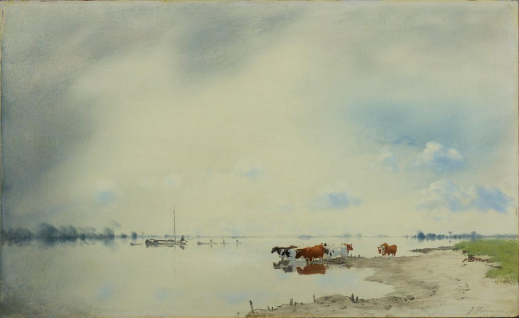 Toen Jan Voerman, na zijn studie in Amsterdam, in Hattem ging wonen hield hij daar, in zijn grote achtertuin, ook kleinvee en zelfs een paar koeien. Op zijn schilderwerk zien we vaak de IJssel onder prachtige wolkenluchten maar er zijn ook vaak koeien en soms paarden te zien. Als kleine jongen vond ik die schilderijen met de koeien, vaak half in het water van de IJssel staand, het allermooist.