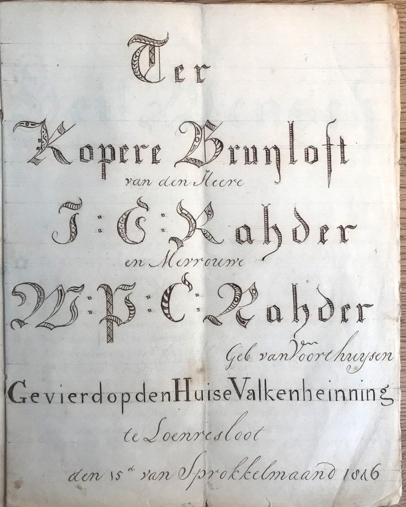 Koperen bruiloft van J.C. Rahder en W.P.C . Rahder van Voorthuysen in 1846