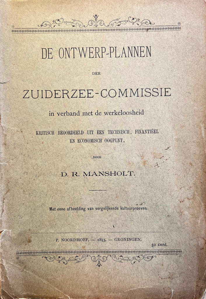 Het essay van D.R. Mansholt over ontwerp plannen van de Zuiderzee commissie en de gevolgen voor de economie uit 1919