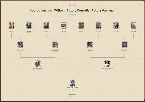 Vorige afbeelding Volgende afbeelding Voorouders van Willem, Peter, Cornelis (Peter) Voerman Willem, Peter, Cornelis (Peter) Voerman